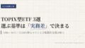 「1306を買えばTOPIXそのものを完全に持てる」という見方は半分だけ正しい。そう思いやすいのは、名前にTOPIXとあり、日本株全体を広く持つETFだからである。実際には、1306が連動するのは配当込みTOPIXで、通常のTOPIXとは比較の土台が少し違う。さらに、ETFとしては市場価格で売買するので、基準価額とぴったり同じ値段で毎回買えるわけでもない。だから、比較するときは「TOPIXか」「配当込みか」「市場価格で買うETFか」を分けて見る必要がある。何をするかは単純で、1306を比べる相手を選ぶ段階で、まず連動対象を揃えること。配当込み同士なら1475、通常TOPIXまで広げるなら2557や1308。ここを揃えるだけで、かなり判断がぶれにくくなる。