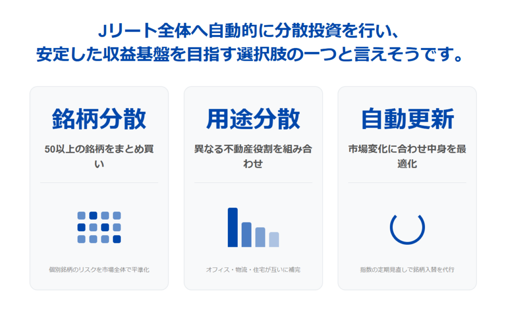 狙いはシンプルで、個別リートを調べ続ける負担を減らしつつ、不動産の収益を分散して取り入れること。