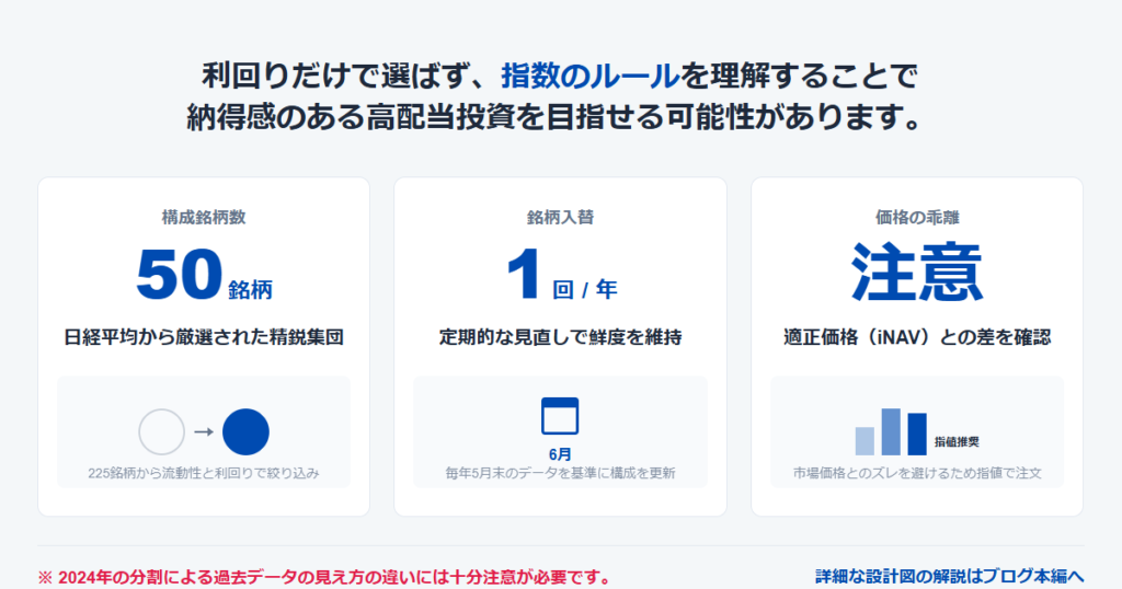 この記事は利回り自慢じゃなく、設計図(指数ルール+ETFの構造)を読む回。