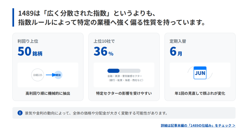この記事では、1489の組入銘柄について、