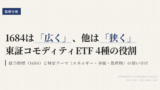 1684は、原油や金を単品で持つ商品ではない。コモディティ全体の動きに一括で触れたいときに使う器であり、株式や債券の代わりというより、ポートフォリオの横に置く補助輪として読むほうが実態に合う。まずはスペックを固めたほうが早い。