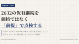 取り崩し期に入っているなら、生活通貨が円である以上、2632の意味は大きくなる。評価額のブレを少しでも減らしたい局面では、ヘッジありが合う。一方で、ヘッジコストや純資産規模、売買条件もあるので、取り崩し期だから自動的に2632とはならない。円キャッシュの必要時期が近いかどうかで決めるべきである。