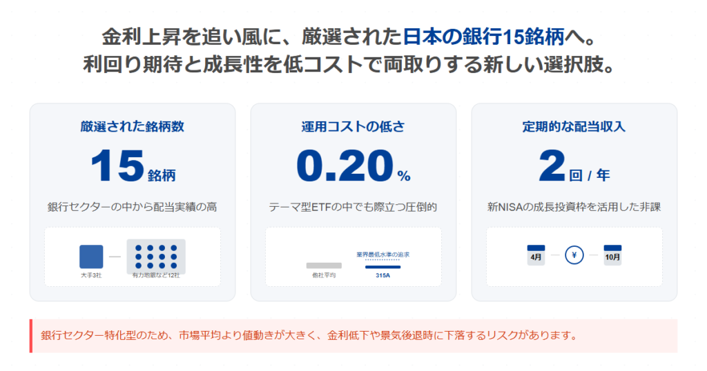315AとはどんなETFなのか。結論から言うと、日本の銀行株に特化した高配当ETF。