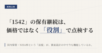 この記事は、1673をいつ手放すかを当てるためのものではない。保有を続けてよい前提がまだ残っているかを点検する。銀価格の上下ではなく、商品設計、ポートフォリオでの役割、そして自分の生活条件の変化を軸に見直しトリガーを整理したい。1673は、下がったから変える銘柄ではない。銀を持つ理由、商品性、資産配分での役割という前提が崩れたときにだけ見直す。その順番を逆にすると、判断はほぼ崩れる。この銘柄をポー...