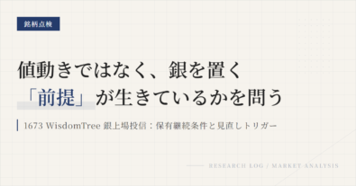 コモディティETF 1673|WisdomTree 銀上場投信の保有継続条件と見直しトリガー|値動きではなく、銀を置く理由が生きているかで点検する