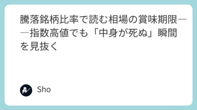 指数が上がっているなら、相場は強いという思い込み。 S&P500が最高値を更新していれば強気、下げていれば弱気。 判断がシンプルだし、見るグラフも一本で済む。 だから、それが正解のように見えてしまう。でも、その理解はどこかで通用しなくなる。 一部の巨大な会社だけが株価を引き上げているときや、見た目の価格の裏でこっそりお金が逃げているときだ。 指数は上がっているのに、値下がりする会社が増え、一番安い...