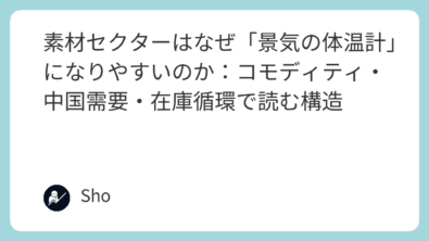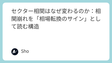 業種ごとの似た動き、つまり相関は、その業種の性格だからずっと固定されているという思い込み。 過去のチャートを見て、この2つはいつも一緒に動く、あるいは逆に動くと信じたくなる気持ちは分かる。 ある期間だけを切り取れば、その見方は正解に見えるから。しかし、この理解は相場が荒れた瞬間に壊れる。 普段は別々に行動する業種が同時に暴落して、投資先を分けてブレを抑える分散の効果が消えてしまう。 逆にずっと同じ...