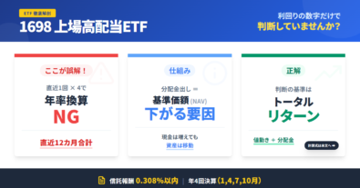 高配当ETFの「分配金」は、数字だけ見ると魅力的に見える。でも、分配スケジュールや利回りの計算をきちんと理解していないと、「思っていたのと違う」というズレが起きやすい。この記事では、1698(上場高配当〈東証配当フォーカス100〉)を例に、分配金がいつ・どの条件でもらえるのか、利回りをどう計算すればズレにくいのか、数字を見るときに何に注意すればいいのかを整理している。公式資料を前提に、日付や価格の...