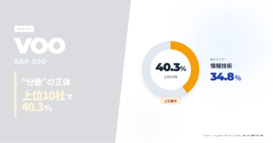 VOO(Vanguard S&P 500 ETF)って、「米国株投資の王道ETF」って呼ばれがち。王道って言葉ほど、人は中身を見ずに買いたくなる。事実としてVOOは、S&P500(米国大型株の代表指数)に連動する代表的なETF(上場投資信託)だ。ただ「S&P500=安心・最強」って反射で決めつけるのは、ちょっと早いかもしれない。そこでこの記事では、VOOの組入銘柄を一次情報(ファクトシート:運用会...