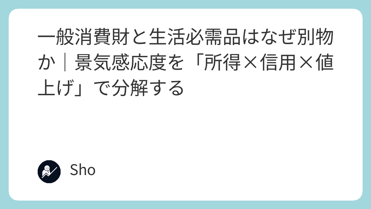 「一般消費財」と「生活必需品」をラベルではなく、所得・信用・コストの感応度で理解する。
