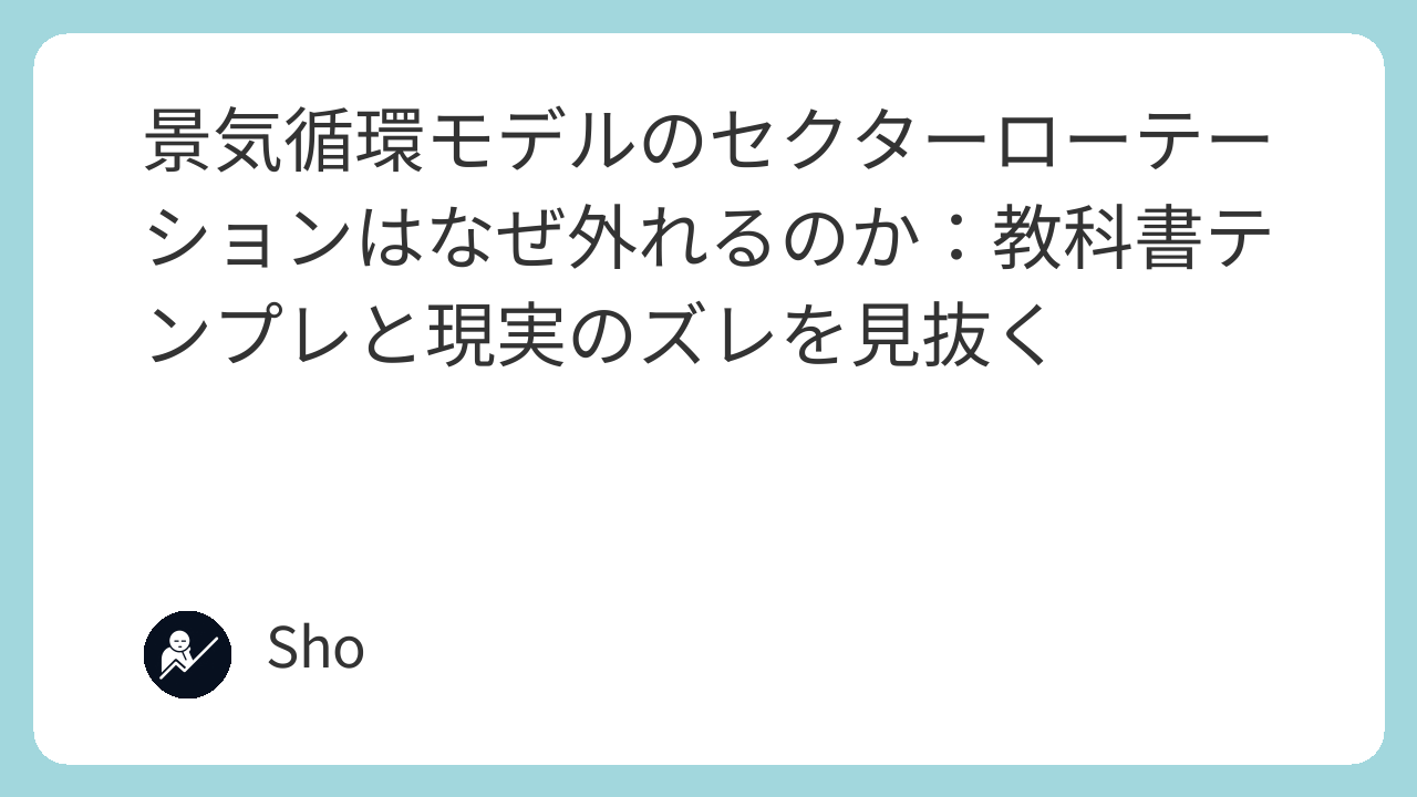 景気が同じでも、この前提(レジーム)が違えば、勝つ業種は変わる。 インフレが安定しているか。政策がゆっくりか。供給ショックがないか。 テンプレートが暗黙のうちに決めている「前提」を、現実と照らし合わせる作業が欠かせない。