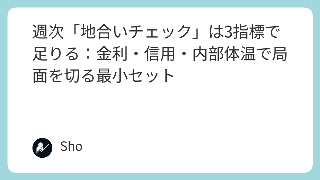 やることはシンプルだ。 週末にこの3つを並べて、どの制約が効いているかを確認する。 最初の一歩は、先週の数値からどちらに動いたか、方向を記録することから始めるといい。