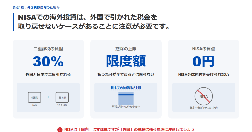 NISA(少額投資非課税制度)を併用すると、外国税額控除で取り返せない外国税が出ることがある。