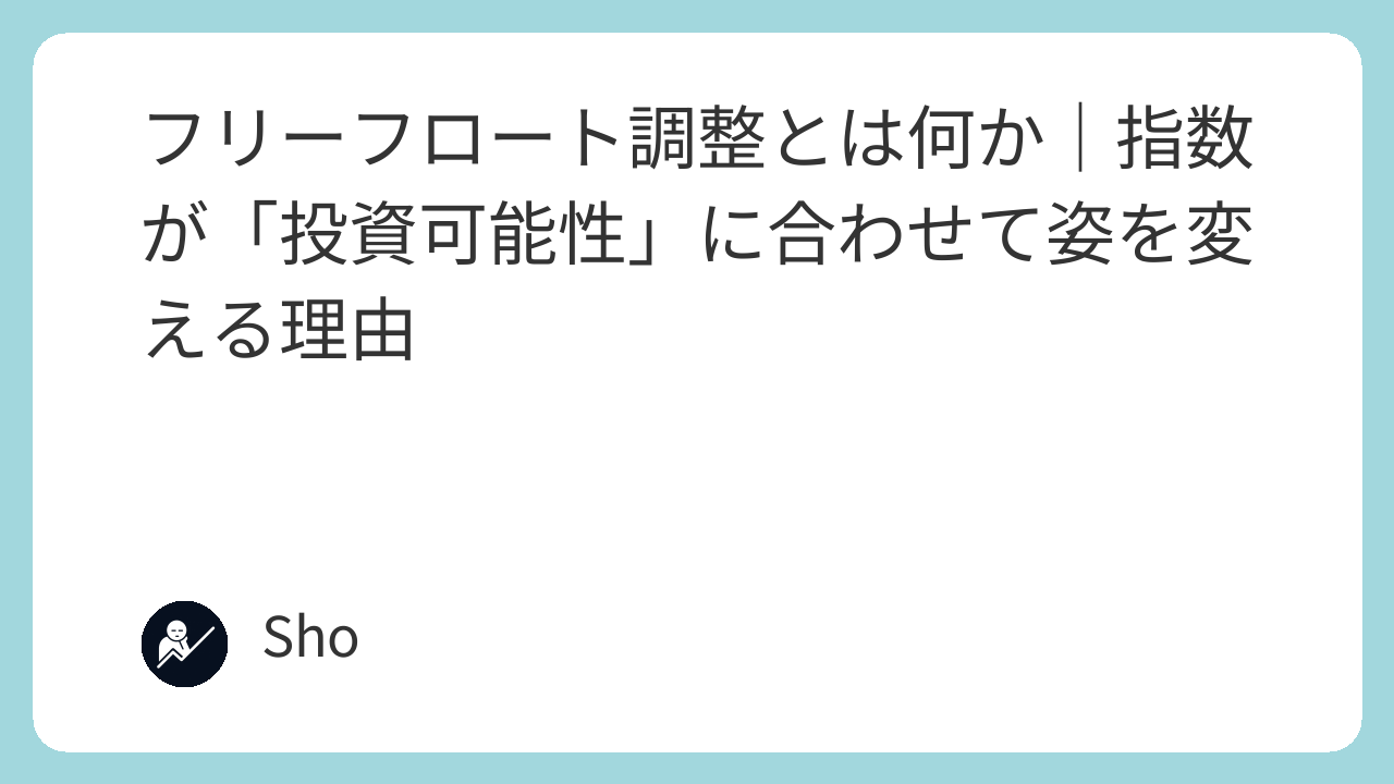 本記事の目的は、フリーフロート調整と投資可能性が、なぜ指数に組み込まれるのかを因果で整理すること。