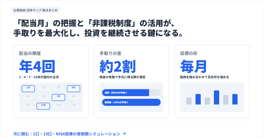 このページは「配当はいつ」「入金はいつ」「手取りはどれくらい」を早見表で一気に片付ける保存版。