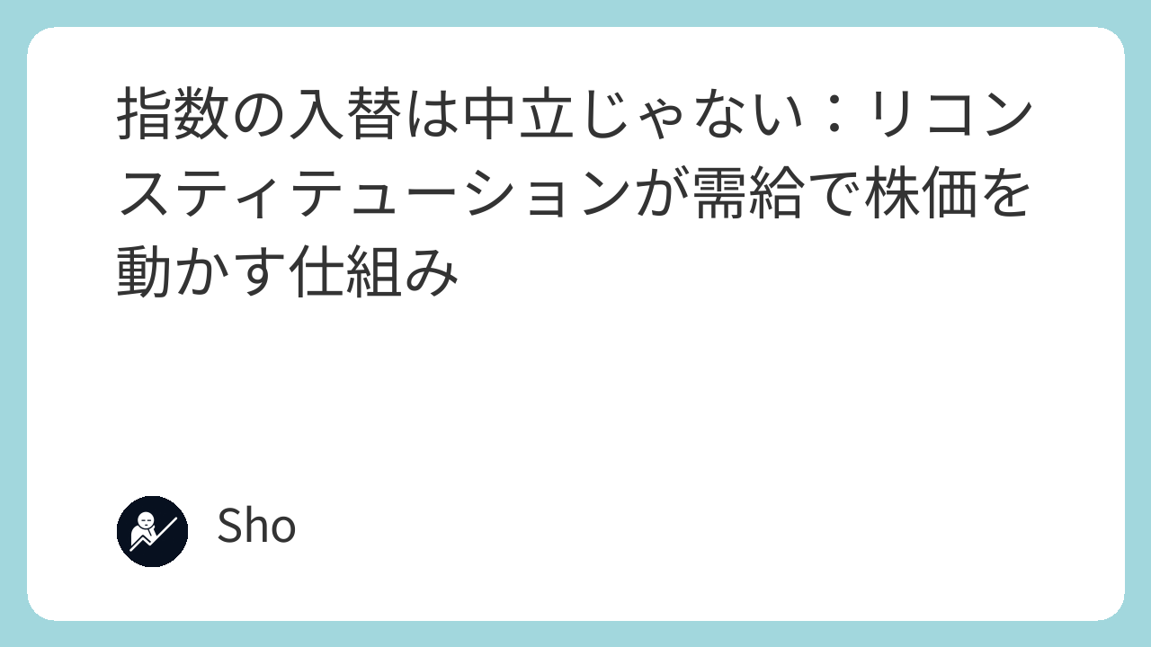 入替は指数の中立性を保つために存在する。けど同時に、追随売買という副作用を必ず生む。