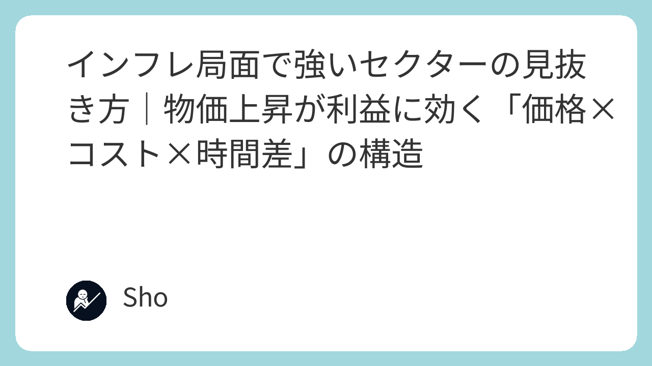 インフレは特定のテーマが上がるお祭りではない。 企業の利益の作り方が試される試験のようなものだ。 この文章では、名前ではなく構造でインフレに強い会社を見抜く方法を伝える。