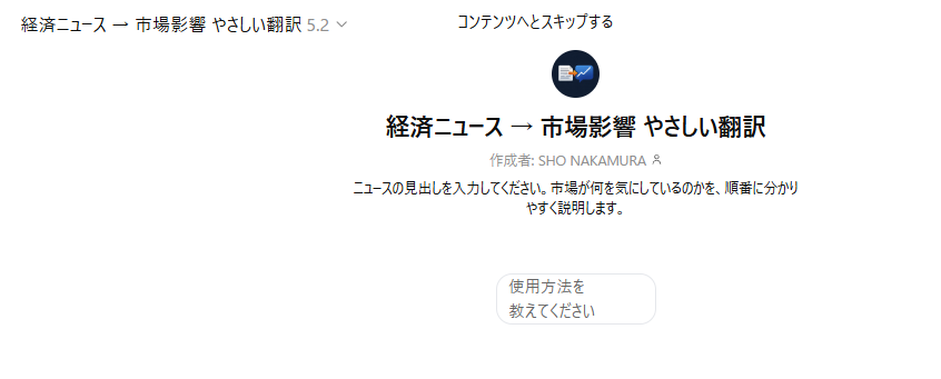 私が作ったGPTs(カスタムGPT)『経済ニュース → 市場影響 やさしい翻訳』のこと。