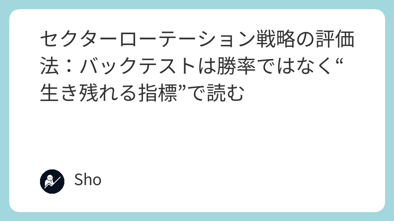 リスクを測る指標が必要な理由は、シンプル。 市場で解くべき問題は、儲かるかどうかではなく、運用を続けられるかだから。 セクターローテーションは、局面に合わせて投資先を入れ替える。 ここでルールが壊れるとき、最初に犠牲になるのは運用者の精神状態。