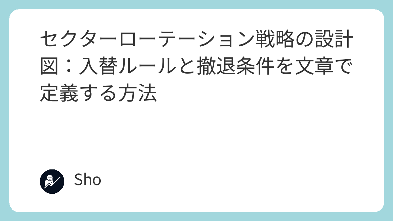 この記事の目的は、ローテ戦略を「それっぽい相場観」から切り離すこと。 入替ルールと撤退条件を文章で定義できる状態に持っていく。 読み終わる頃には、シグナルの条件、入れ替える量、負けを小さくする条件を、他人に渡せるレベルで書けるようになるはず。