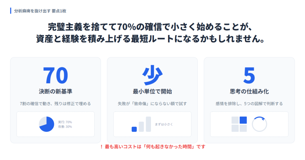 投資における完璧主義は、ほぼ確実に行動を止める。