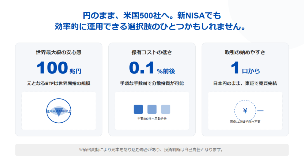 円のまま買えて、普段使ってる証券口座でそのまま取引できる。