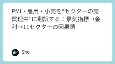 「景気指標が良いなら、株は上がるはずだ」 景気が良ければ企業の売上が伸びて、株価も上がるという理屈は自然に聞こえる。 だからPMI(企業の仕入れ担当者の体感を表す数字)が上がったら、景気が良いときに買われやすい業種(景気敏感セクター)を買えばいい。 そう見えるかもしれない。でも、この理解は相場の肝心なところで通用しなくなる。 数字が良いのに株が下がる日は必ず来る。 これは投資家の気まぐれではない。...