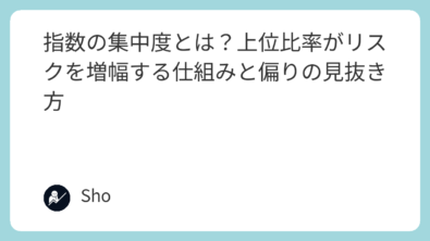 指数は何百銘柄も入っている。だから十分に分散されていて安全寄りだ。この理解が自然に見える理由もある。個別株は一社で吹き飛ぶ。一方、指数は束ねている。つまり、リスクが薄まっているように見える。そのため「銘柄数=分散」という直感が働く。ただ、この理解は肝心な局面で破綻する。指数のリスクは、銘柄数だけでは決まらない。重要なのは重み(ウェイト)だ。どの銘柄にどれだけ配分されているか。この偏りでリスクは決ま...