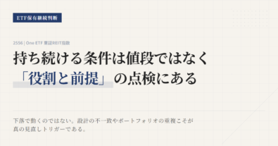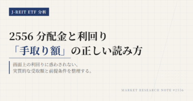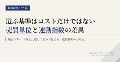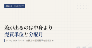 1476、2556、530Aは、いずれも東証で買えるJ-REIT ETFで、見た目はかなり似ている。だが、実務では同じではない。1476と530Aは配当込み指数、2556は配当なし指数に連動し、530Aは2026年3月19日上場予定の新設銘柄でもある。比較の芯は、利回りの見た目ではなく、指数設計と売買のしやすさに置くべきである。既存の実績と売買の安心感を重視するか、配当込み指数と1口売買の扱いやす...