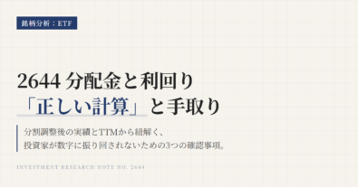 グローバルX 半導体関連-日本株式(2644)は、半導体テーマの強さに乗るためのETFである。ただし、こうしたテーマ型ETFは値動きが大きく、上がった下がっただけで判断するとブレやすい。この記事は、どこで手放すかを当てるためのものではなく、保有を続ける前提が今も生きているかを点検するための整理表として読むのが正しい。2644を見直す軸は、下落そのものではない。最初に置いた役割、指数の設計、コスト、...