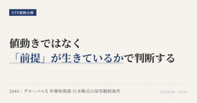 テーマETF 2644|グローバルX 半導体関連-日本株式の保有継続条件と見直しトリガー|値動きではなく前提が生きているかで判断する