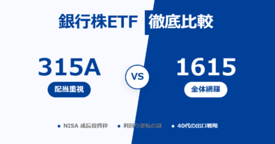 日本の銀行株ETFでよく名前が挙がるのが、315Aと1615。どちらも銀行セクターにまとめて投資できる一方で、中身の作りと使いどころが微妙に違う。この記事では、分配金、コスト、組入銘柄の違いから、自分に合う選び方を整理していく。結論:315Aと1615は「何を重視するか」で決まる先に結論。迷ったら「どっちを優先したいか」を一度分けるとスッキリする。315Aが向きやすい人少額から買って、年2回の分配...