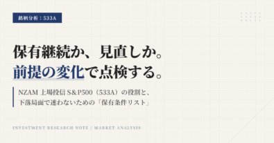 日本ETF 533A|NZAM 上場投信 S&P500(為替ヘッジなし)の保有継続条件と見直しトリガー|下落ではなく前提の変化で点検する