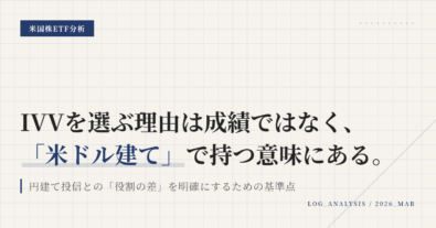 IVVは、保有の可否を短期の値動きで決める銘柄ではない。この記事は、タイミング当ての話ではなく、IVVを持ち続ける前提が今も成り立っているかを点検するためのものである。相場が荒れたときほど、価格ではなく「役割」「商品性」「自分の状況」の3つに分けて確認することが重要になる。IVVを見直すかどうかは、下落したかではなく、前提が壊れたかで判断するべきである。商品そのもの、ポートフォリオでの役割、自分の...
