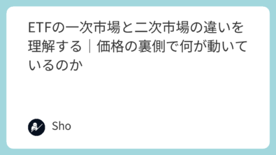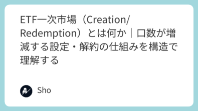 ETFは株と同じように取引所で売買できる。だから株と同じ構造だと思われがち。ここが最初の落とし穴。株式の売買は、基本的に「すでに発行されている株」を投資家同士が交換しているだけ。その日の売買で株数が突然増えたり減ったりはしない。一方ETFは、見た目は株でも、裏側で発行口数が増減する。この増減が起きる場所が一次市場、いわゆるCreation/Redemption、設定と解約だ。本記事の目的は、なぜこ...