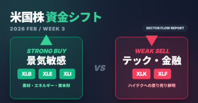 相場の方向感は「景気敏感(エネルギー・素材・資本財)に資金が寄り、金融・テック側は重い」という形がはっきり出た回だ。価格は反発して見えても、実際に投資家が資金を増やしたか(需給)はフローでしか見えない。フローは短期の回転も混ざるので、3日・10日・20日を並べて残っている資金かを確認している。本記事は週2回(火曜・金曜)更新で、Xでは載せきれない全ランキングをまとめる。 全ランキング表のフロー金額...
