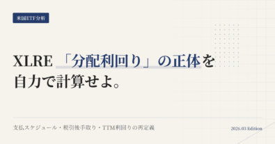 XLREは、米国の不動産セクター(主にREIT中心)にまとめて投資できるETFだ。この記事が伝えるのは「売り時」ではない。保有を続けるための前提が揃っているかを点検する整理だ。値動きではなく、前提が崩れたかどうかで見直し判断を動かす。下落は見直し理由にならない。判断軸は「前提が壊れたか」だけだ。指数・コスト・売買のしやすさ・自分の目的が揃っている限りは保有継続。崩れたときだけトリガーに従って、淡々...