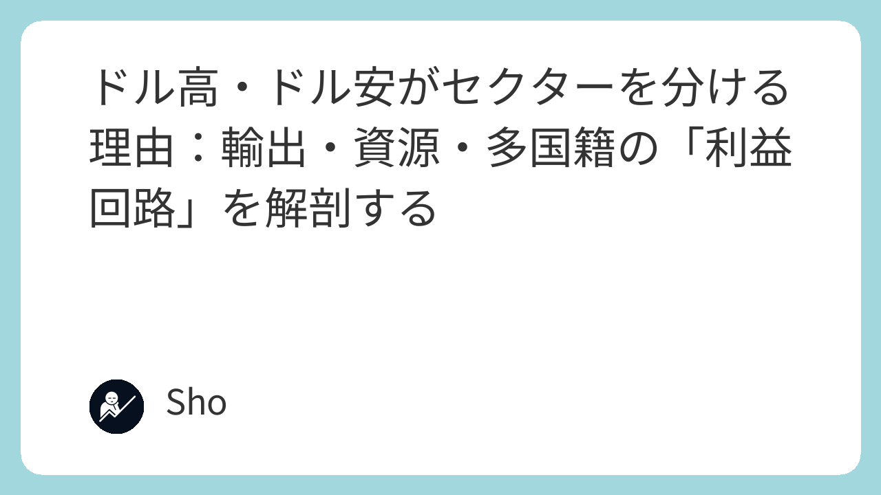 為替レートを見た瞬間に、「どのセクターの、どの利益経路が傷み、どこが守られるか」を構造的に予測できるようになること。
