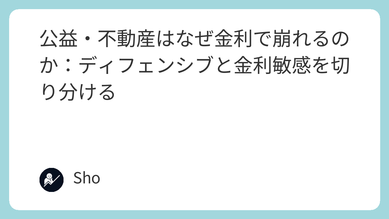 結果として、利益が悪化する前から価格は先に売られる。 下がっているのは需要ではなく、割引率とお金を借りるコストだ。 この仕組みがわかれば、ディフェンシブなのに下がる謎は消える。
