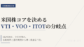 VTIは「米国株コア」を低コストで持つ土台だ。判断は価格ではなく、指数・コスト・流動性・自分の目的という前提が保たれているかで決める。前提が崩れたときだけ置換を検討し、恐怖や直近成績では動かない。次は、VTIとVOO・ITOTの違いを選択基準で整理した比較(VS)記事へ。