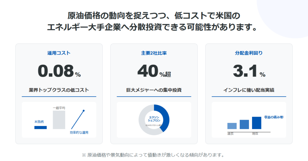 連動する指数は S&P Energy Select Sector Index で、米国のエネルギー関連銘柄の動きを反映する。